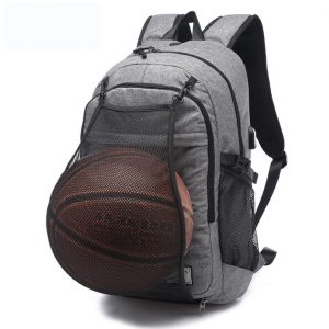 Custom sport backpack with USB Charging Port and front mesh to pack basketball,football,rugby ball