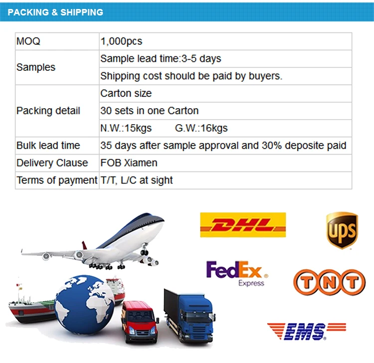 | Printing | Screen imprint, embroidery, heat transfer, customize per request |