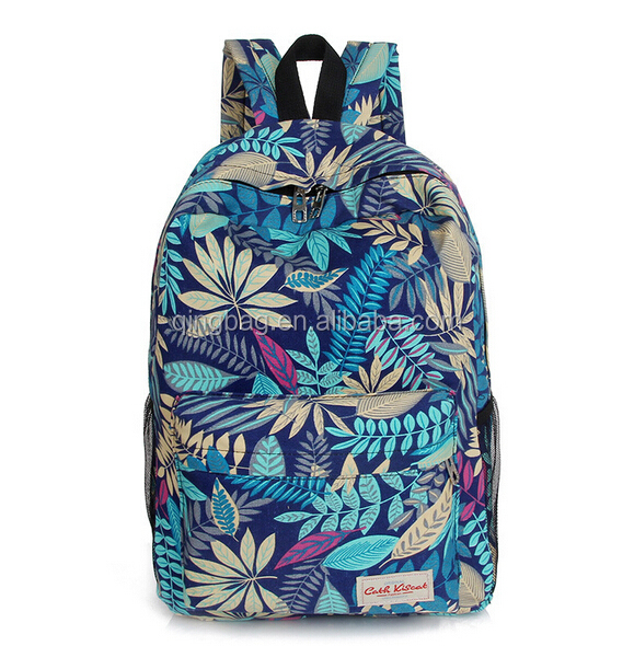 Hot fashion canvas retro casual men and women printing leaves backpacks